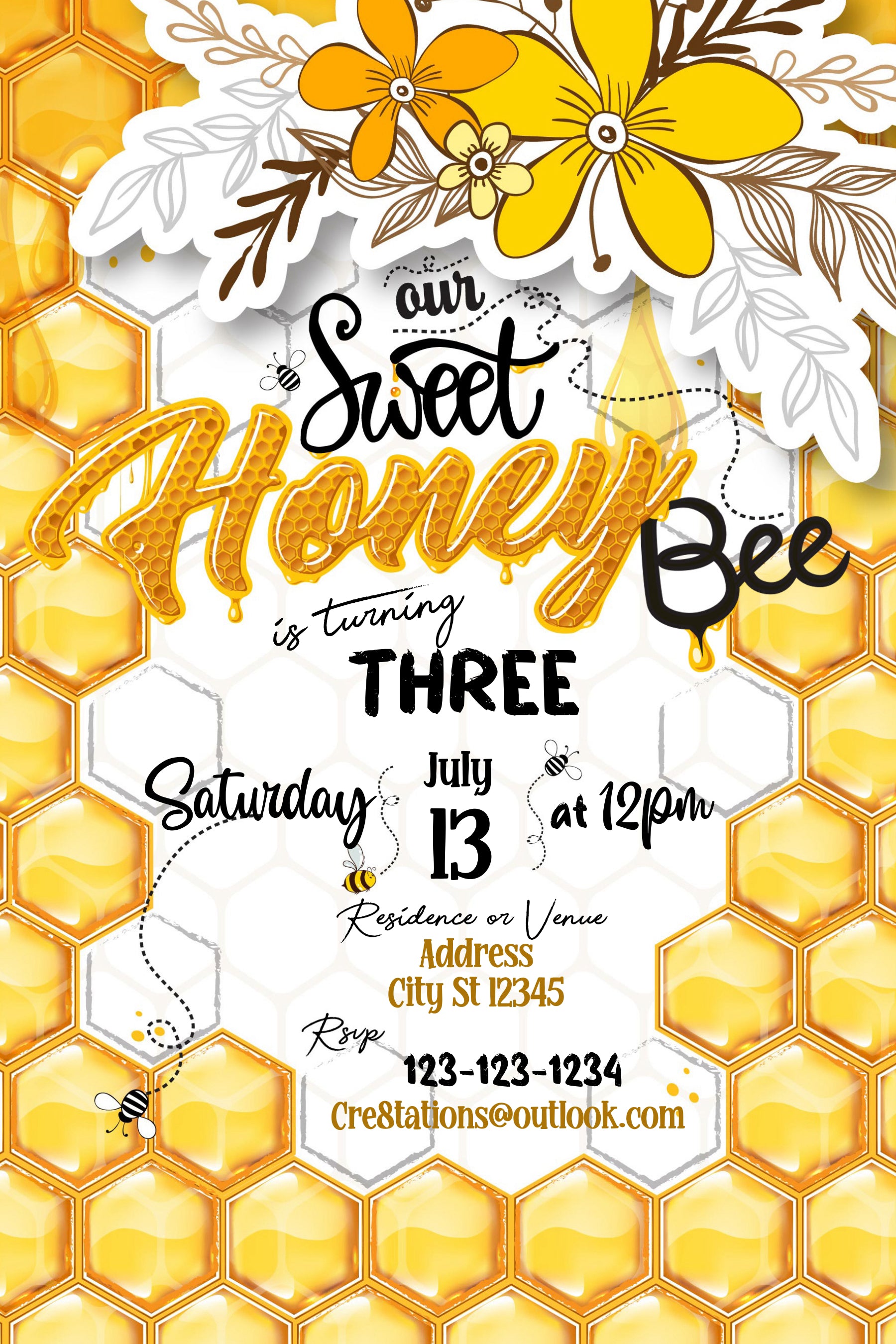Invite guests to buzz over for a sweet birthday celebration with our Bumble Bee Birthday party invitation. This playful and adorable design will create a hive of excitement for the special occasion. Let the good times fly with this buzz-worthy invitation