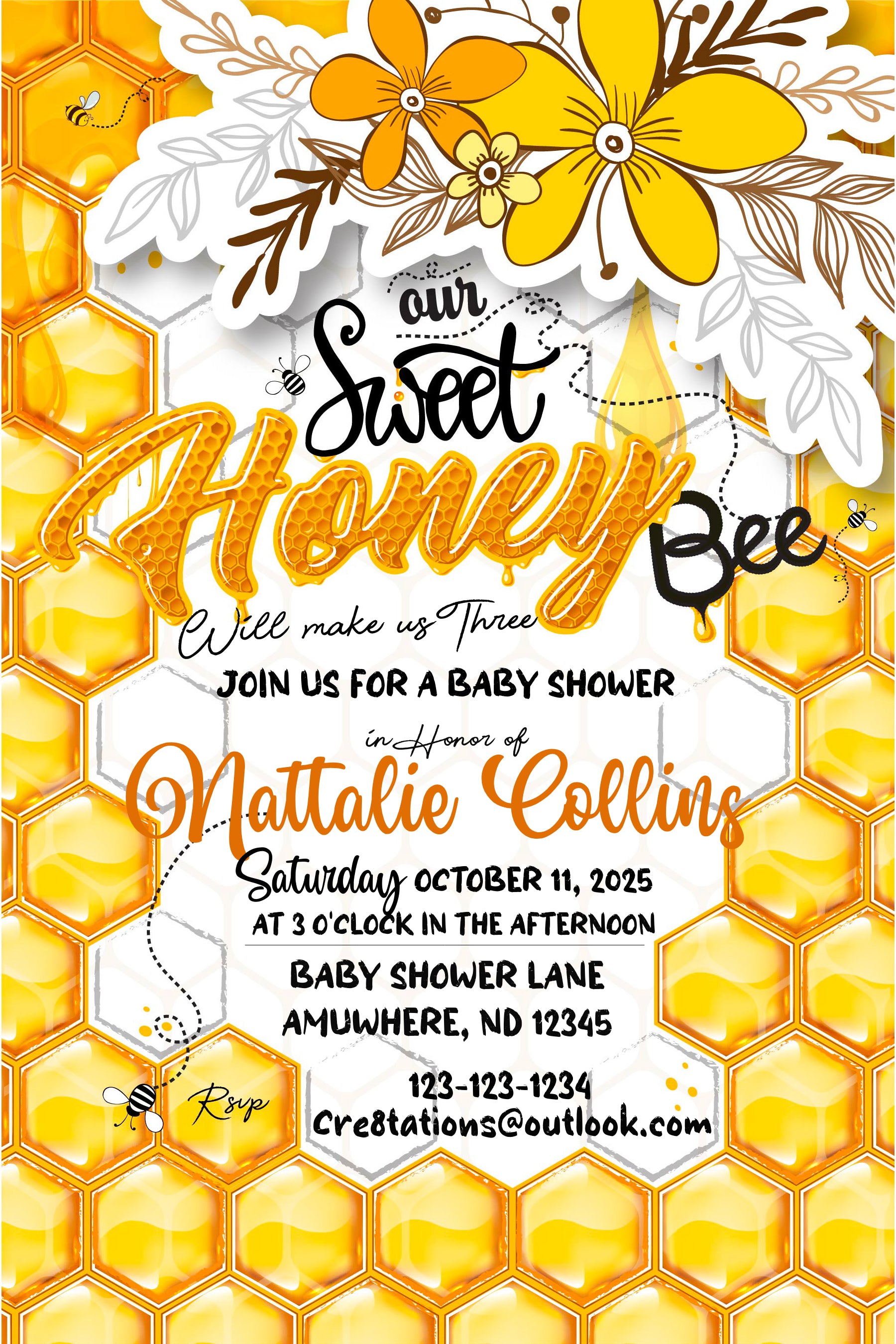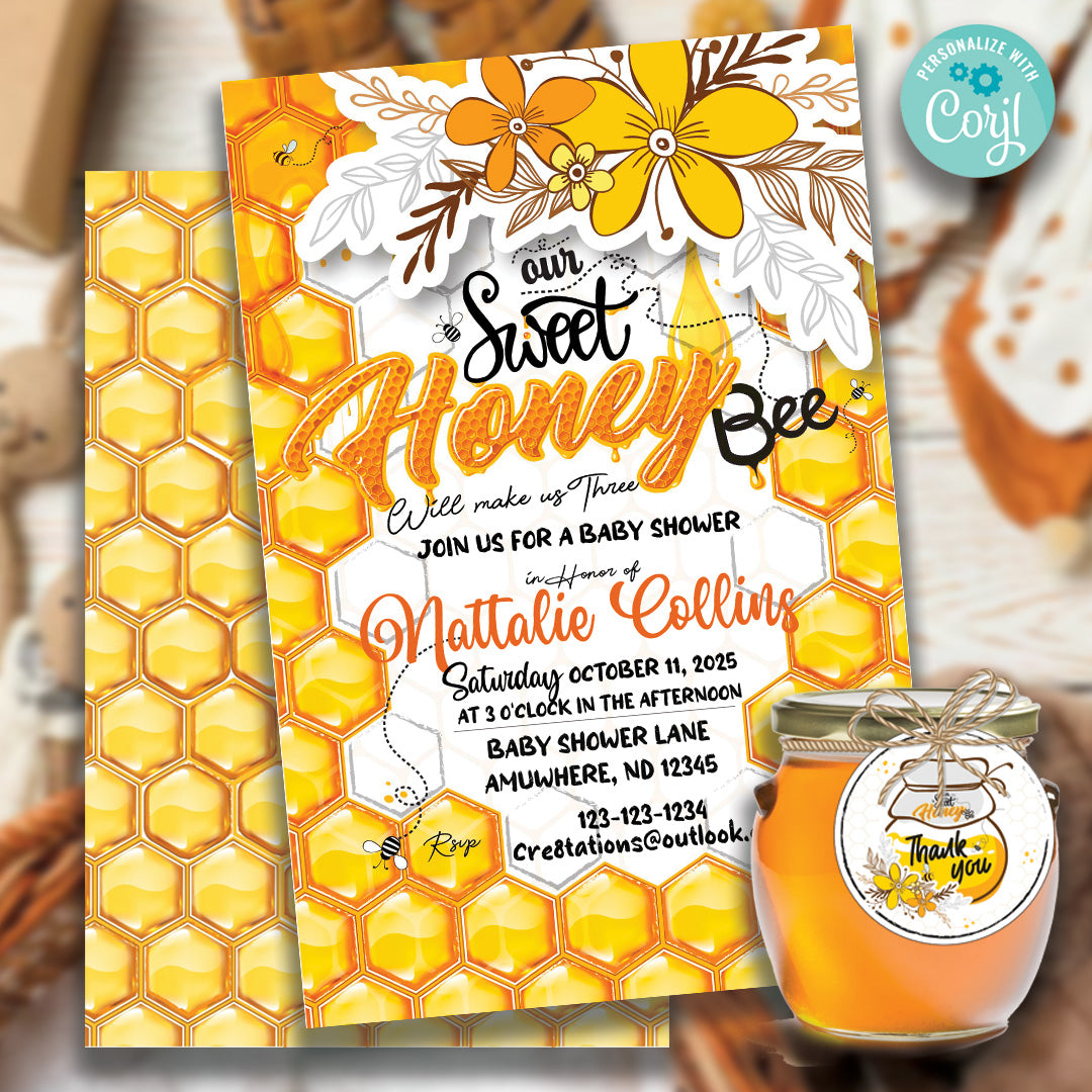 Get ready to celebrate with a sweet and buzzing vibe! This honey bee baby shower invitation brings playful charm and cheerful energy to your special day. With bright colors and adorable bee details, it’s the perfect way to invite loved ones to share in the joy and excitement of welcoming your little honey.