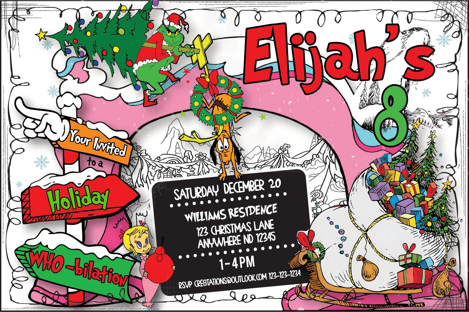 Get ready for a mischievous celebration with The Grinch - Who-bilation Party invitation! Perfect for birthday and Christmas parties, this playful invite lets the Grinch steal the spotlight while you customize every word. Make your event memorable with a fun, editable design that captures the holiday spirit and birthday cheer all in one.